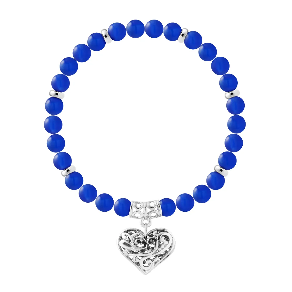 Armband Pure Gem | BLAUWE LUCHT AGAAT | Ferrules 'MIJN HART' Sterlings zilver 925 duizendsten | HR® elastisch - Hoge Weerstand | Gefabriceerd in onze Franse Werkplaats | Geleverd met onze prestige doos en een certificaat van garantie & authenticiteit