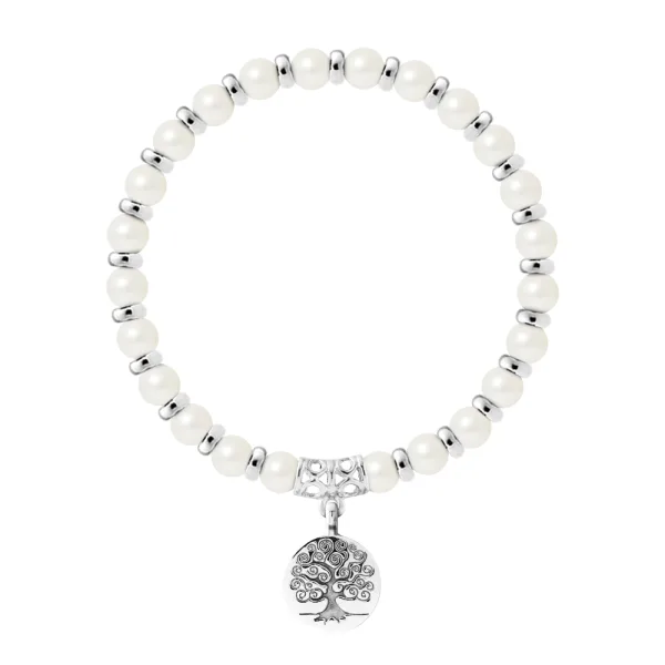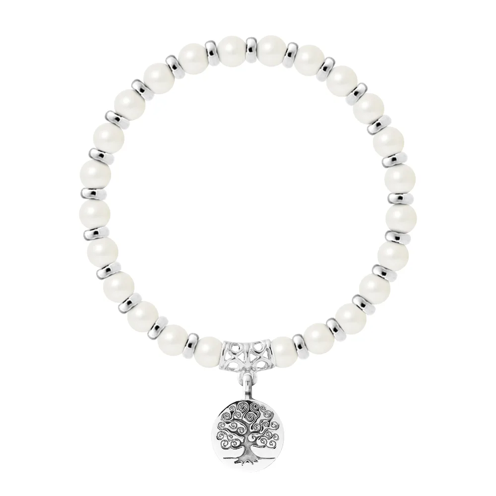 Armband Pure Gem | Zoetwaterkwaliteit AA - Natuurlijke Witte Kleur - Ferrules 'MAGIC TREE' Sterling Zilver 925 duizendsten | HR® elastisch - Hoge Weerstand | Gefabriceerd in onze Franse Werkplaats | Wordt geleverd met onze prestige doos en een certificaat van garantie & authenticiteit