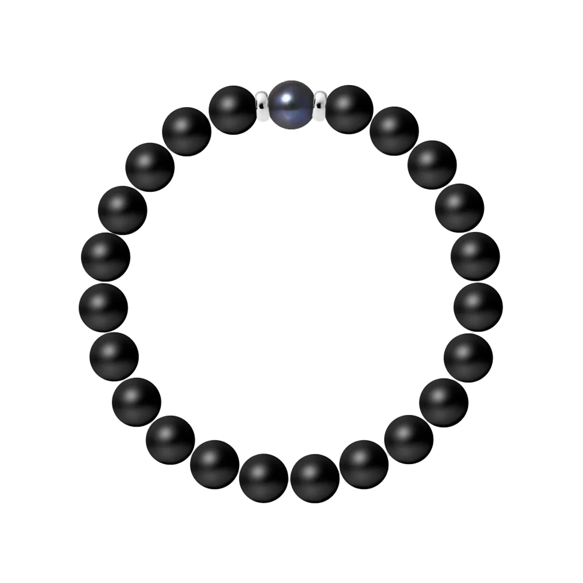 Armband - Zwarte Agaat - Zoetwater Kwaliteit AA - Zwarte Kleur - Echte Natuurlijke Zoetwater Parel Ronde vorm 9-10 mm - Zwarte Kleur - Sterling Zilver 925 Duizendsten Ferrules | HR® elastisch - Hoge Weerstand | Gemaakt in onze Franse Werkplaats | Geleverd met onze prestige doos en een garantie- en echtheidscertificaat