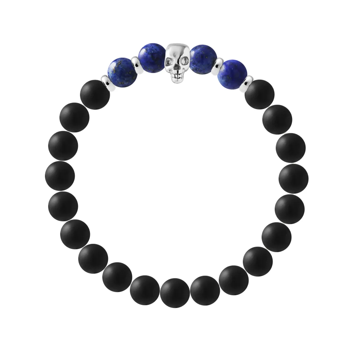 Armband TETE DE MORT - ZWART AGAAT STEEN - LAPIS LAZULI - Skull Head Sterling Zilver 925/1000 | HR® elastisch - Hoge Weerstand | Geproduceerd in onze Franse Werkplaats | Geleverd met onze prestigedoos en een certificaat van garantie & authenticiteit