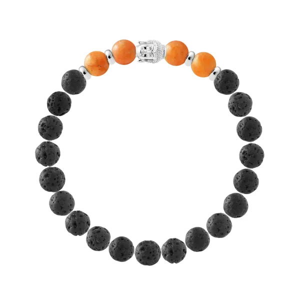 Armband | Natuurlijke Lavasteen | Diameter 8 mm - LAVA STEEN - AVENTURIJN - Sterling Zilver 925 Duizendsten Fittingen | HR® elastisch - Hoge Weerstand | Geproduceerd in onze Franse Werkplaats | Wordt geleverd in onze prestigieuze doos en met een garantie- en echtheidscertificaat