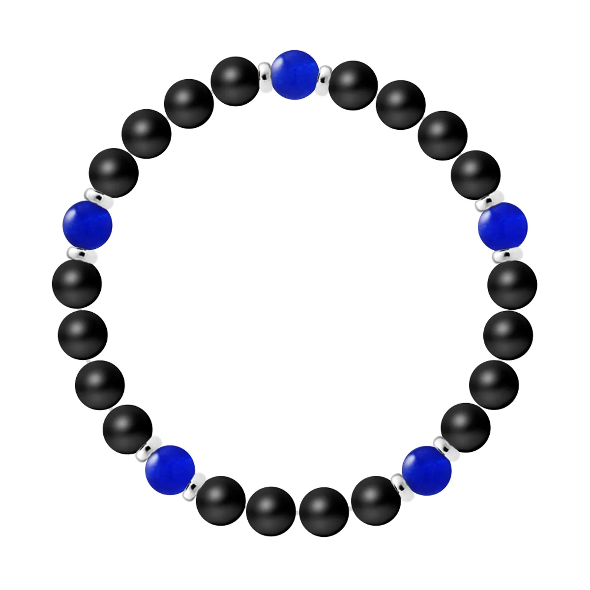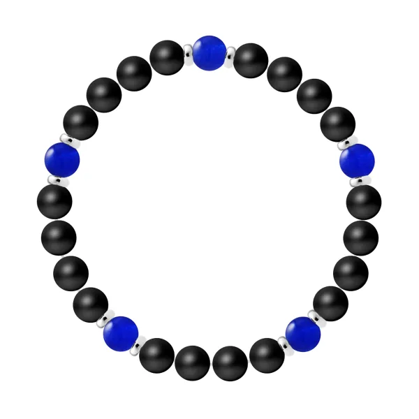 Armband 5 Stenen | ZWARTE AGAAF STEEN - CALCEDONIA | Sterling Zilver 925 Duizendsten Ferrules | HR® elastisch - Hoge Weerstand | Gemaakt in onze Franse Werkplaats | Geleverd met onze prestige doos en een garantiebewijs & echtheidscertificaat