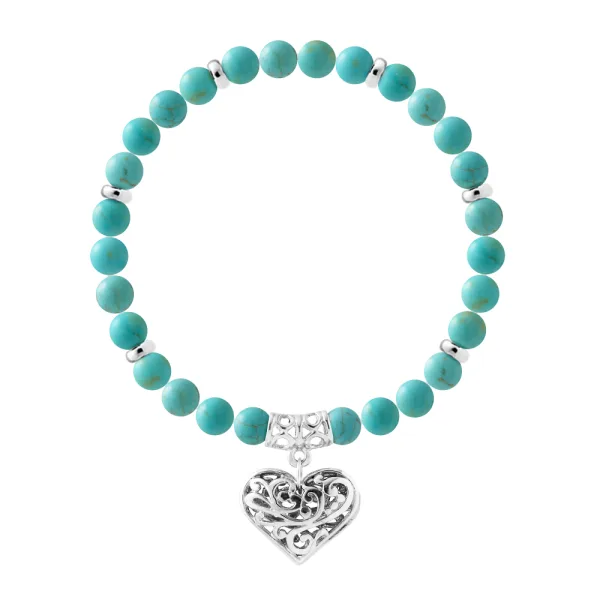Armband Pure Gem | TURQUOISE | Ferrules 'MY HEART' Sterling Zilver 925/1000 | HR® elastisch - Hoge Weerstand | Gemaakt in onze Franse Werkplaats | Geleverd met onze prestigebox en een garantiebewijs & authenticiteitscertificaat