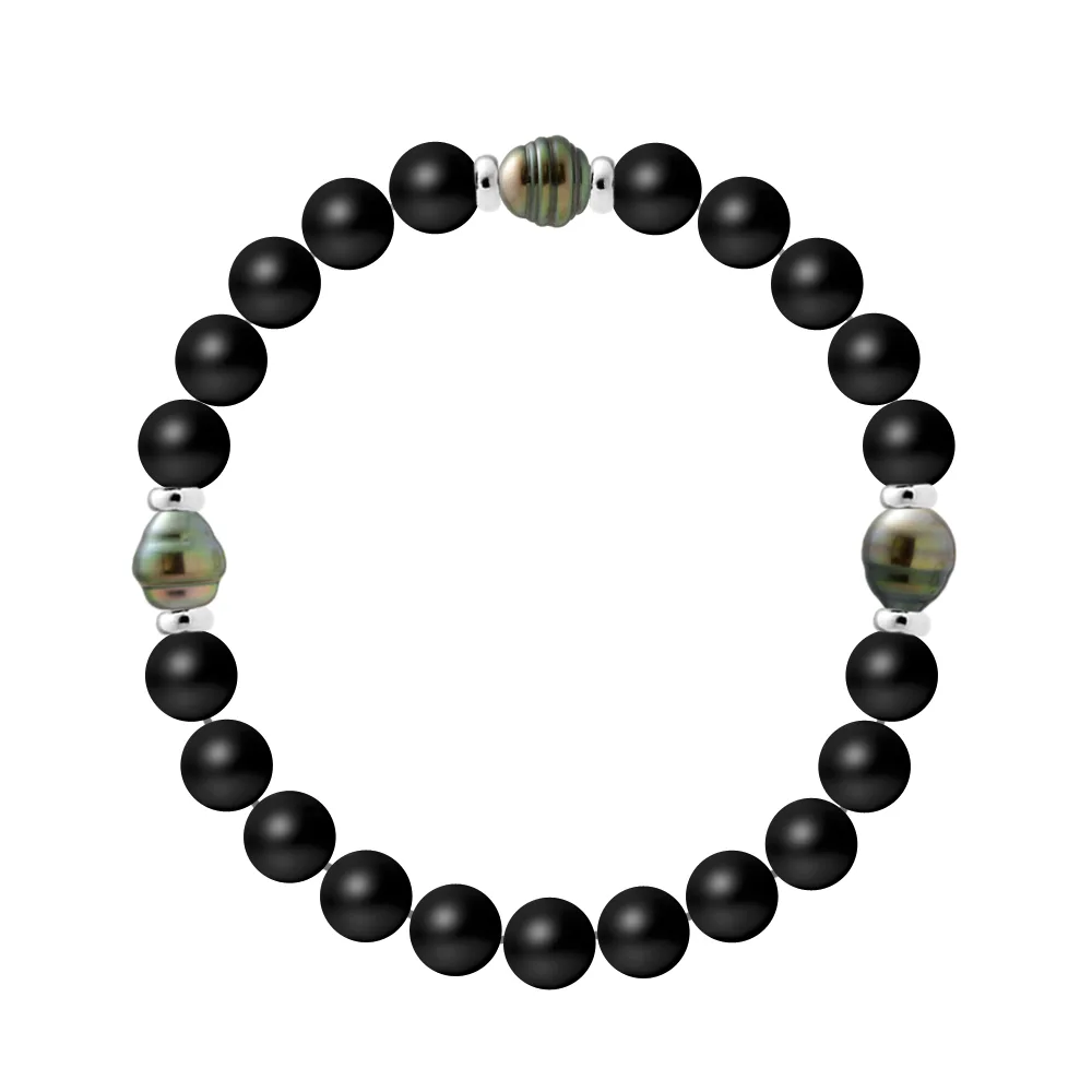 Armband - 3 Echte Tahitiaanse GeCultiveerde Parels in Cirkelvorm 8-9 mm - MAT ZWARTE AGATE - Sterling Zilver 925 Duizendsten Beugels | HR® elastisch - Hoge Weerstand | Gefabriceerd in onze Franse Werkplaats | Geleverd met onze prestige box en een garantiebewijs & echtheidscertificaat
