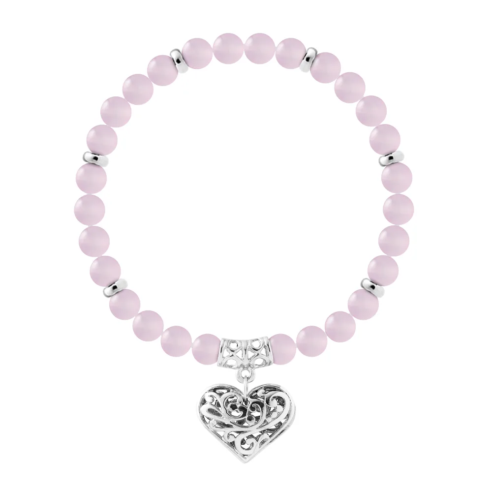 Armband Pure Gem | ROZE KWARTS | Ferrules 'MIJN HART' Sterling Zilver 925 duizendsten | HR® elastisch - Hoge Weerstand | Gefabriceerd in onze Franse Werkplaats | Geleverd met onze prestigieuze doos en een garantie- en echtheidscertificaat