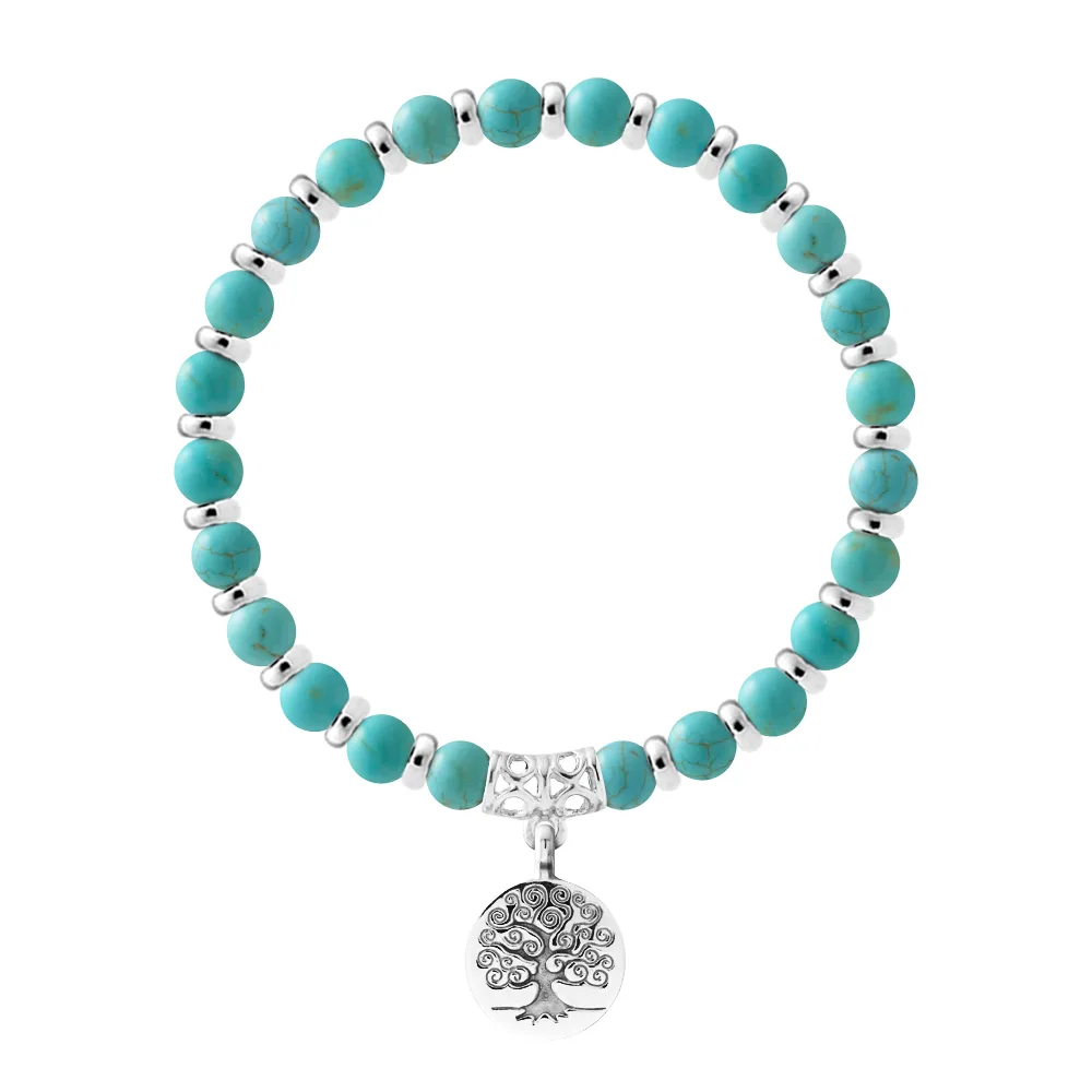 Armband Pure Gem | TURKOOIS - Ferrules 'MAGISCHE BOOM' Sterling Zilver 925 Duizendsten | HR® elastisch - Hoge Weerstand | Vervaardigd in onze Franse Werkplaats | Geleverd met onze prestigekist en een certificaat van garantie & authenticiteit
