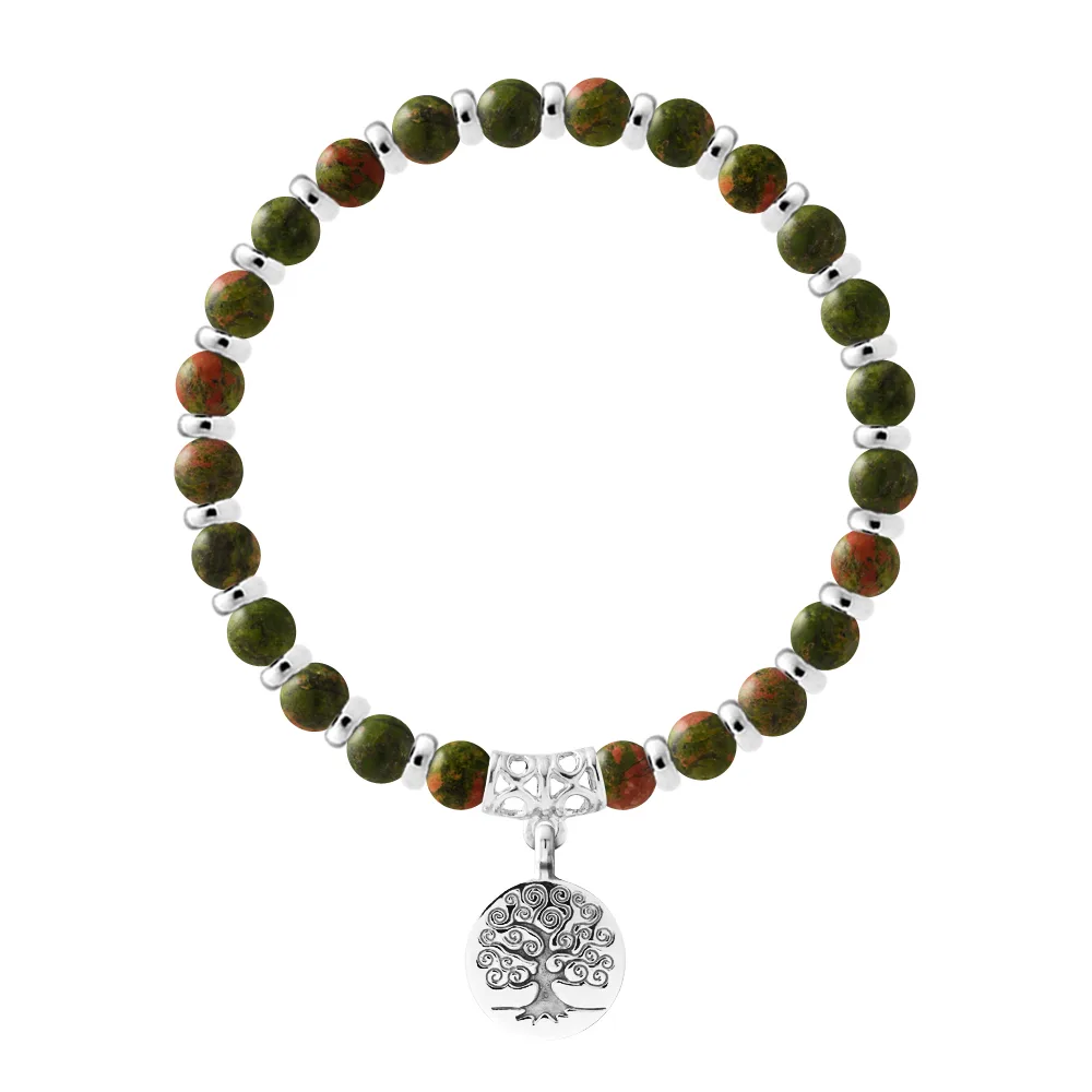 Armband Pure Gem | UNAKITE - Ferrules 'MAGIC TREE' Sterling Zilver 925 Duizendsten | HR® elastisch - Hoge Weerstand | Geproduceerd in onze Franse Werkplaats | Geleverd met onze prestigesdoos en een certificaat van garantie & authenticiteit