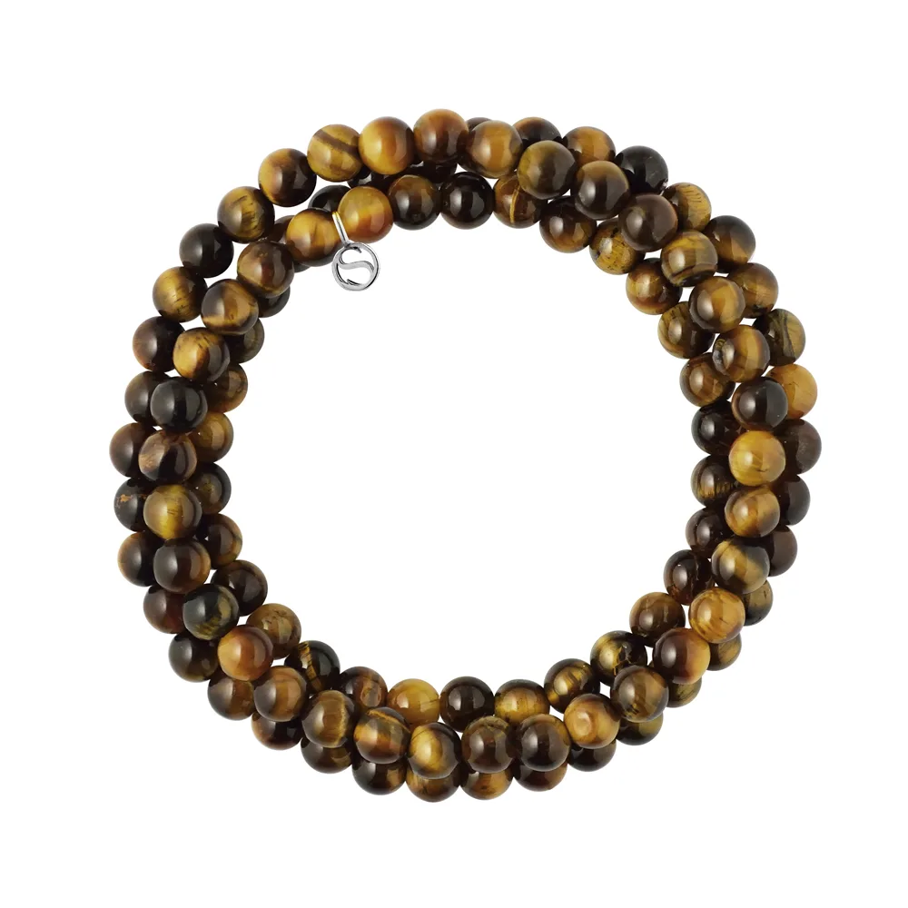 Armband Drie Rijen - Œil de Tigre - Sterling Zilver 925 Duizendsten Ferrules | HR® elastisch - Hoge Weerstand | Gemaakt in onze Franse Werkplaats | Geleverd met onze prestigieuze doos en een certificaat van garantie en echtheid
