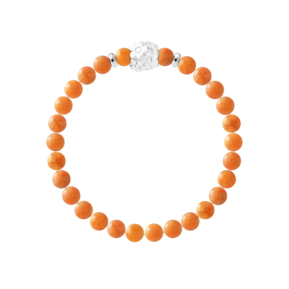 Armband Pure Gem | JASPER STEEN ORANJE | Ferrules 'FLOWER POWER' 'S' Sterling Zilver 925 Duizendsten | HR® elastisch - Hoge Weerstand | Gefabriceerd in onze Franse Werkplaats | Geleverd met onze prestigieuze doos en een certificaat van garantie en authenticiteit