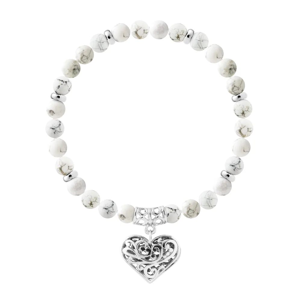 Armband Pure Gem | Natuurlijke witte Howlietsteen | Ferrules 'MY HEART' Sterling Zilver 925 Duizendsten | HR® elastisch - Hoge Weerstand | Gefabriceerd in onze Franse Werkplaats | Geleverd met onze prestige doos en een garantie- en echtheidscertificaat