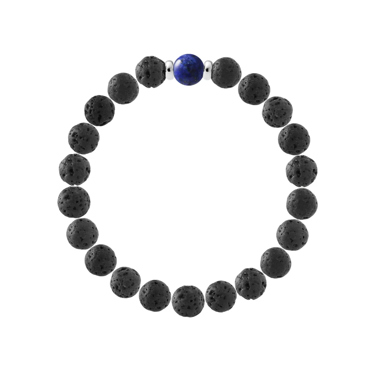 Armband | Natuurlijke Lava steen | Diameter 8 mm - LAVA STEEN - LAPIS LAZULI - Sterling Zilver 925 Duizendsten Ferrules | HR® elastisch - Hoge Weerstand | Gemaakt in onze Franse Werkplaats | Geleverd met onze prestige doos en een waarborg- en echtheidscertificaat