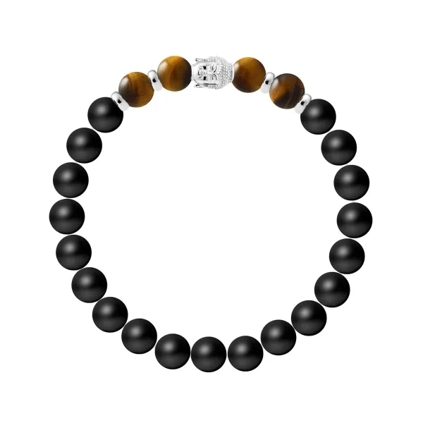 Armband BUDDHA - ZWARTE AGAAFSTEEN - TIGER OOG STEEN - Buddha Sterling Zilver 925 Duizendsten | HR® elastisch - Hoge Weerstand | Gefabriceerd in onze Franse Werkplaats | Geleverd met onze prestige doos en een garantie- en echtheidscertificaat