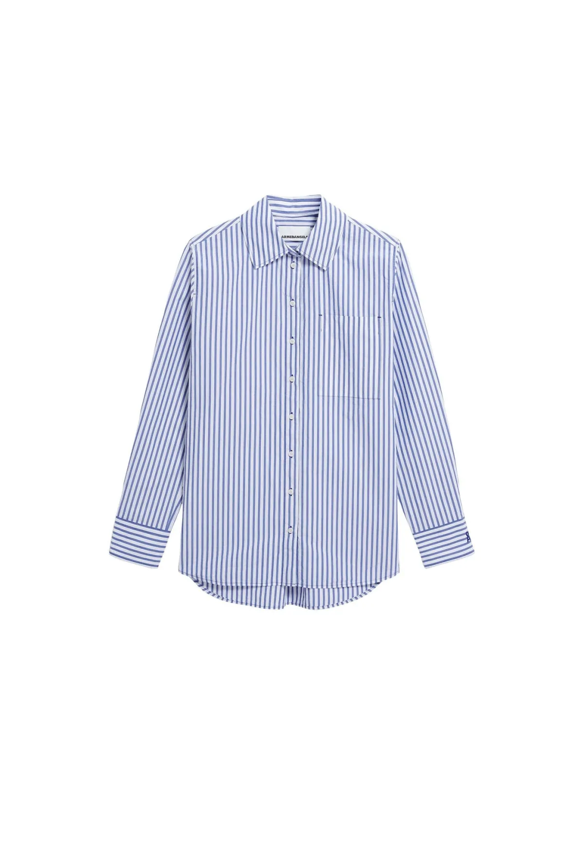 Blouse type: Wijde blouse; Design: Borstzak; Type sluiting: Knoopsluiting; Materiaal: Katoen; Motief: Gestreept; Kraag: Kentkraag; Details: Borduursels; Pasvorm: Losse pasvorm; Armlengte: Lange mouw; Lengte: Normale lengte