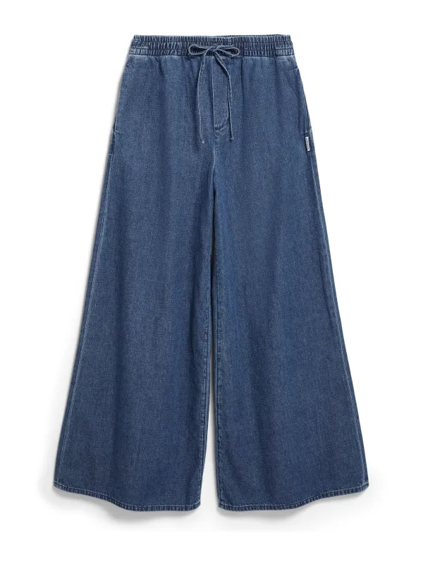 Design: Gevoerde zoom/rand, Elastische taille/zoom; Materiaal: Denim; Motief: Effen; Extra's: Label patch/label flag, Gewassen effect; Lengte: Lang/maxi; Pasvorm: Wide leg; Taillehoogte: Mid waist