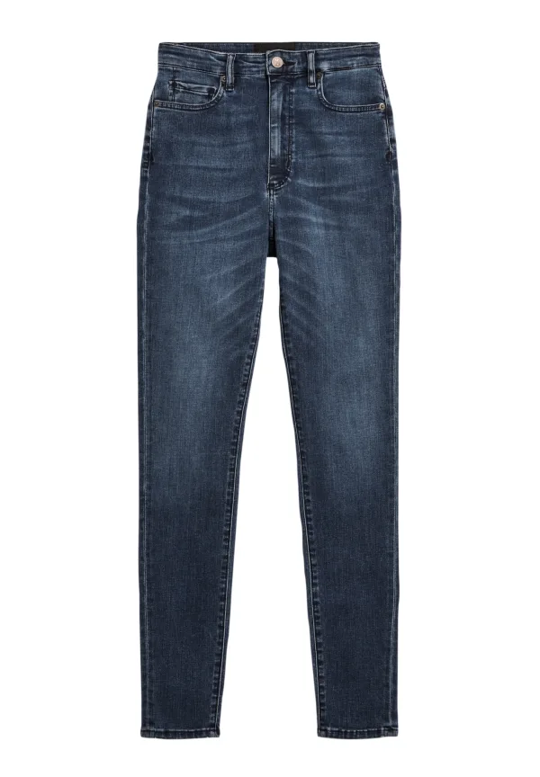 Design: Ritssluiting, 5-pocket-style; Type sluiting: Ritssluiting; Materiaal: Denim; Motief: Effen; Extra's: Studs, Riemlussen, Milieuvriendelijk geproduceerd; Wassing: Heavy washed; Lengte: 7/8 lengte; Pasvorm: Skinny; Taillehoogte: High waist