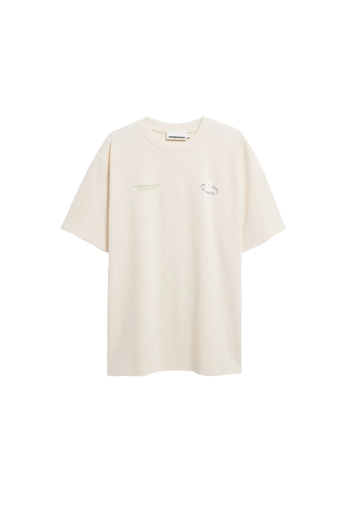 Heren T-shirt van Armedangels;Model ‘Maarkos’;Look: effen;Pasvorm: Relaxed Fit;Applicatie: Logoprint;Hals: Ronde hals;Mouwvorm: kortemouw;Materiaalverwerking: Jersey;Materiaal: puur biologisch katoen