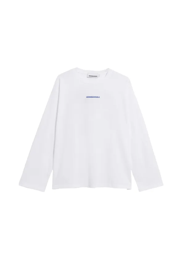 Specificaties: ARMEDANGELS Shirt ‘FIETAA SMILE’ royal blue/koningsblauw / wit