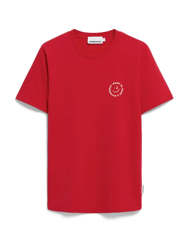 Specificaties: ARMEDANGELS Shirt ‘Jaames Smiley’ beige / rood