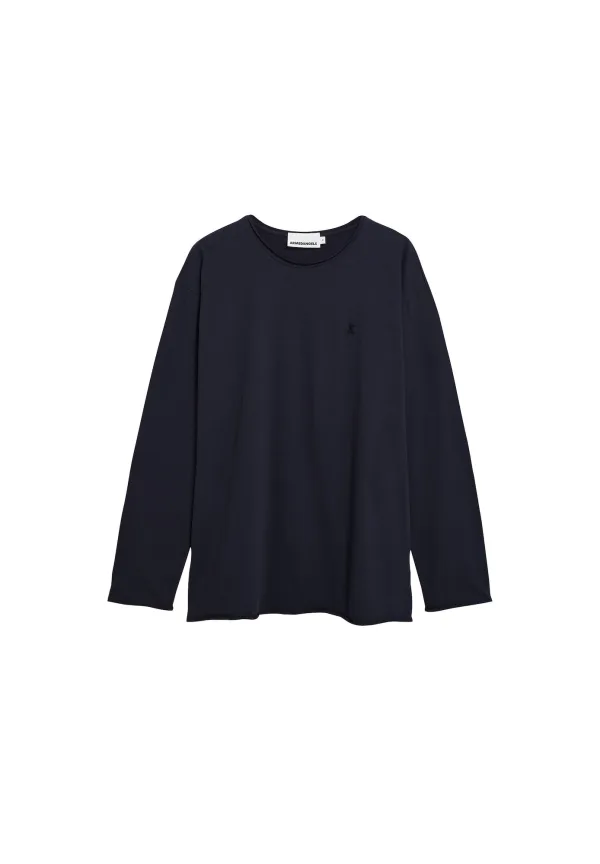 Heren Shirt met lange mouwen van Armedangels;Model 'Jaames';Look: effen;Pasvorm: Regular Fit;Applicatie: Gestikt logo;Hals: Ronde hals;Mouwvorm: lange mouw;Mouwboord: Rolzoom;Rompzoom: Rolzoom;Materiaalverwerking: Jersey;Materiaal: puur biologisch katoen