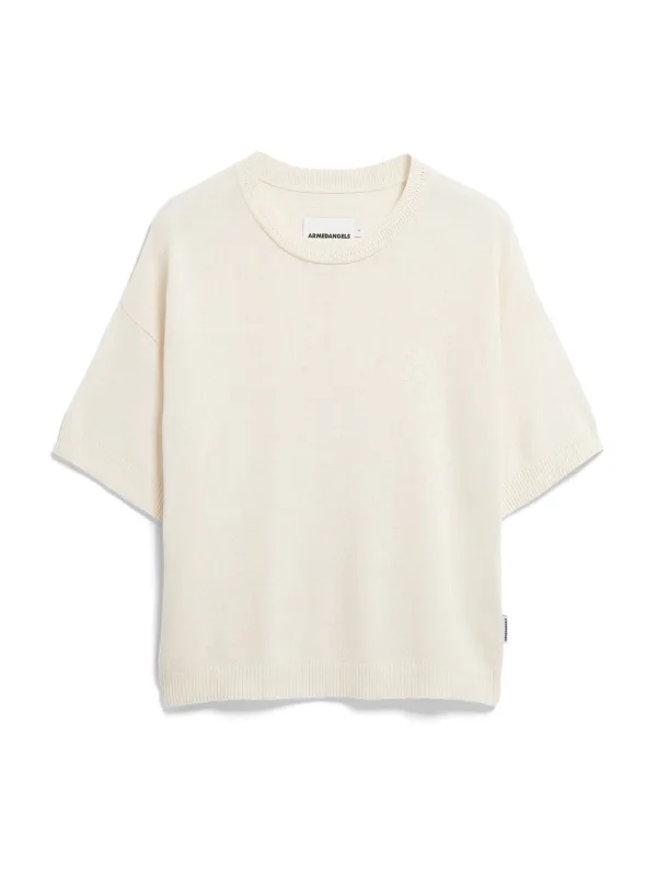 dames pullover van Armedangels;Model 'SL Linen';look: effen;Pasvorm: relaxed fit;Applicatie: gestikt logo;kraagmodel: crew neck;hals: ronde hals;mouwvorm: 1/2-mouwen;Mouwboord: geribbeld;rompzoom: geribd;materiaalverwerking: knitwear;Materiaal: linnenmix