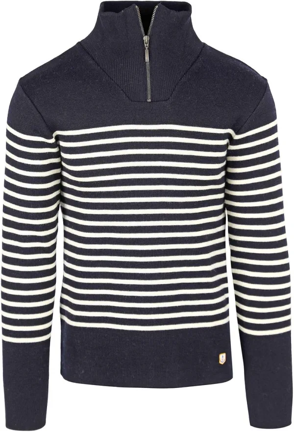 Armor-Lux Camionneur Half Zip Trui Wol Strepen Navy Prijzen