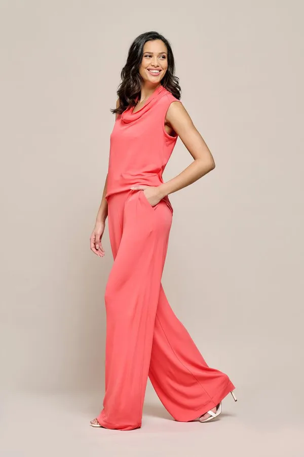 Verken de elegante Ashley top van Mart Visser, een onmisbaar stuk voor je garderobe. Deze koraalkleurige top biedt niet alleen comfort, maar straalt ook stijl uit. De levendige kleur van deze top heeft een heerlijk stretchgevoel en voelt zijdezacht aan, waardoor hij de hele dag door comfortabel zit. Het unieke aan deze mouwloze damestop is de kraag; deze heeft een losse sjaalkraag die elegant valt. Aan de onderkant van de top zijn twee splitten aan beide zijden aangebracht. Door de combinatie van stof en kleur is het een prachtige top die op verschillende manieren gestyled kan worden. Combineer de koraalkleurige top met de bijpassende Palazzo broek voor een jumpsuit-gevoel, voeg een pump toe en je hebt meteen een opvallende avondlook. Of draag de top solo of combineer hem met andere kleuren zoals wit, grijs of zwart voor een tijdloze uitstraling. Voeg een kort wit broekje en witte sneakers toe voor een casual, zomerse look. Fashion tip: de top in combinatie met de bijpassende broek is ook verkrijgbaar in tijdloos zwart.