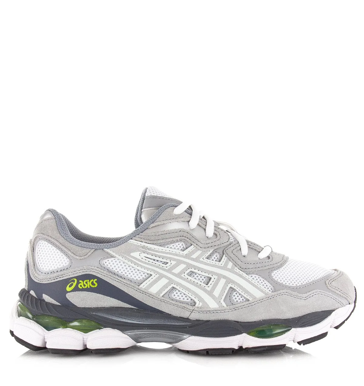 Maak kennis met de ASICS GEL-NYC (White/Glacier Grey), een unisex sneaker die zowel heren als dames in stijl verbindt met comfort. Deze veelzijdige schoenen, in grijs met groene accenten, zijn ideaal voor dagelijks gebruik.