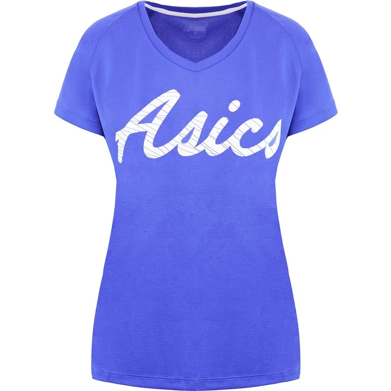 Asics Grafisch Logo Korte Mouw V-Hals Blauw Dames T-shirt 142910 8091