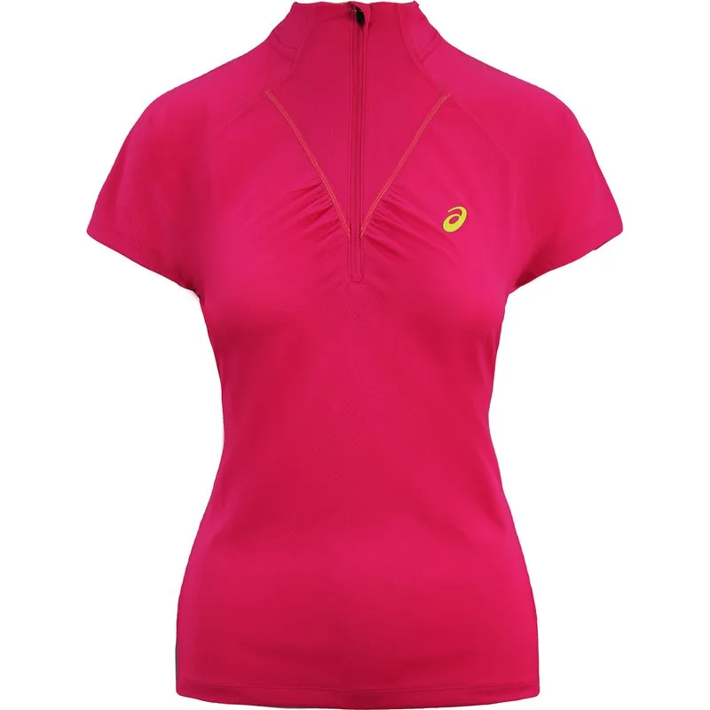 Asics Motion Dry Fuji 1/4 Zip Up Top Roze Dames Hardloop T-shirt 114423 0211