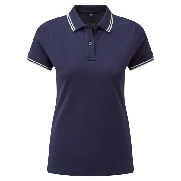 Gepaste polo voor vrouwen met getipt contrasterende details aan de kraag en de manchetten. Voorzien van twee contrastkleurige knoppen op de placket en een contrastkleur op de ventilatieopeningen aan de zijkant.. Inclusief tweelingnaaldstiksel op de zoom en een geribbelde gebreide kraag en manchetten.. Maten: XS (8 UK), S (10 UK), M (12 UK), L (14 UK), XL (16 UK), XXL (18 UK). Materialen: 100% ringgesponnen gekamd katoen, Andere materialen: (Houtskool) 60% katoen, 40% polyester, (Heide Grijs) 85% katoen, 15% viscose.