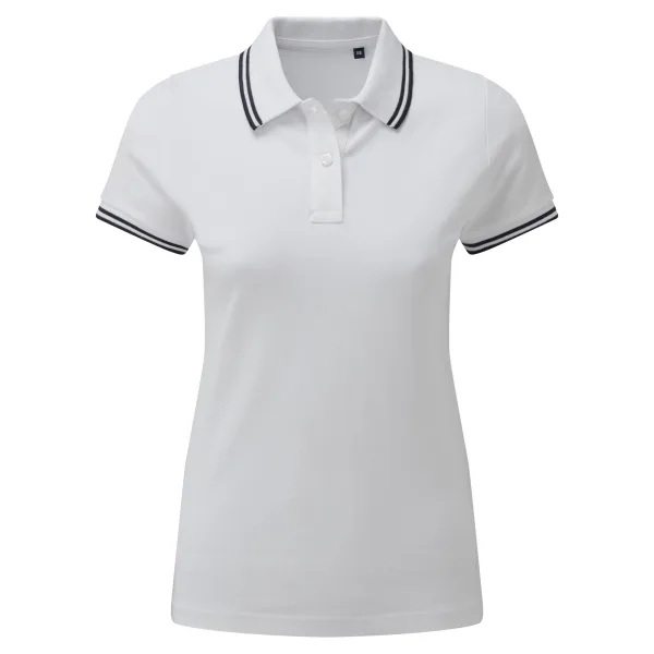 Gepaste polo voor vrouwen met getipt contrasterende details aan de kraag en de manchetten. Voorzien van twee contrastkleurige knoppen op de placket en een contrastkleur op de ventilatieopeningen aan de zijkant.. Inclusief tweelingnaaldstiksel op de zoom en een geribbelde gebreide kraag en manchetten.. Maten: XS (8 UK), S (10 UK), M (12 UK), L (14 UK), XL (16 UK), XXL (18 UK). Materialen: 100% ringgesponnen gekamd katoen, Andere materialen: (Houtskool) 60% katoen, 40% polyester, (Heide Grijs) 85% katoen, 15% viscose.