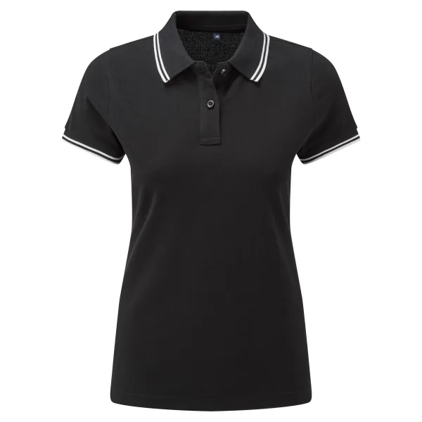 Gepaste polo voor vrouwen met getipt contrasterende details aan de kraag en de manchetten. Voorzien van twee contrastkleurige knoppen op de placket en een contrastkleur op de ventilatieopeningen aan de zijkant.. Inclusief tweelingnaaldstiksel op de zoom en een geribbelde gebreide kraag en manchetten.. Maten: XS (8 UK), S (10 UK), M (12 UK), L (14 UK), XL (16 UK), XXL (18 UK). Materialen: 100% ringgesponnen gekamd katoen, Andere materialen: (Houtskool) 60% katoen, 40% polyester, (Heide Grijs) 85% katoen, 15% viscose.