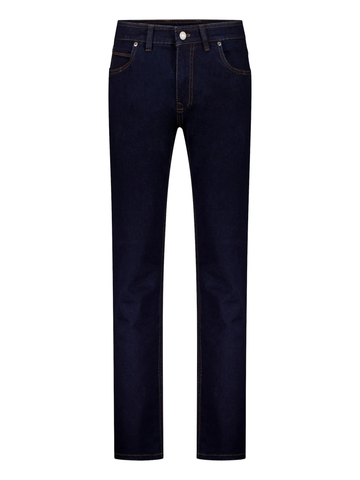 Design: Gevoerde zoom/rand, Ritssluiting, 5-pocket-style; Type sluiting: Knoopsluiting; Materiaal: Denim; Motief: Effen; Extra's: Studs, Contrasterende naden, Label patch/label flag, Riemlussen; Wassing: Blauw denim; Lengte: Lang/maxi; Pasvorm: Slimfit