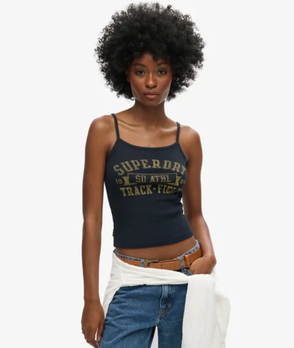 - Bij superdry.nl kun je Athletic College Geribde Camitop met Grafische Print Blauw kopen voor slechts €34,99
