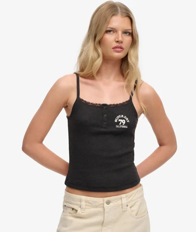 Slim fit - ontworpen om nauwer om het lichaam te vallen voor een meer getailleerde look Spaghettibandjes met een ronde hals en kanten afwerking Knoopsluiting met een geborduurd logo op de borst Kenmerkend label aan de zoom Als onderdeel van onze klassieke collectie is het Athletic Essentials hemdje met knopen en borduursel je nieuwe favoriete basic. Ontworpen met een ingetogen stijl en onberispelijke kwaliteit, is het subtiel genoeg om met alles te combineren en perfect als basislaag in je winte