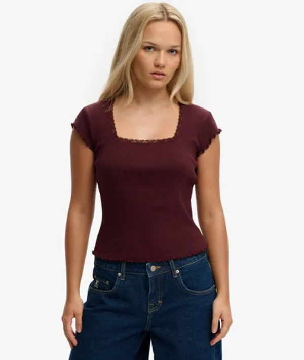 Slim fit - ontworpen om nauwer om het lichaam te vallen voor een meer getailleerde look Vierkante hals met kanten afwerking Golvende zoom aan mouwen en onderkant Geborduurd Superdry-logo op de zoom De basis van elke comfortabele casual outfit begint altijd met ons Athletic Essentials T-shirt met vierkante hals. Combineer met cargo- of carpentersbroeken voor een authentiek chique streetlook, met een vrouwelijke touch dankzij de zorgvuldig ontworpen kanten halslijn. Perfect veelzijdig en klaar om