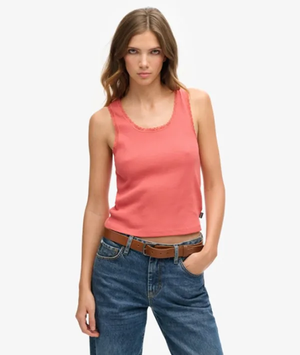 Voeg iets authentieks toe aan je look met ons Vintage-hemdtopje met kanten boord. Deze verfijnde top is een gemakkelijke manier om je outfits naar een hoger niveau te tillen. Kies voor casual-chic, of je de top nu in laagjes draagt of een subtiel statement maakt. Slimfit - de nauw aansluitende pasvorm zorgt voor een getailleerd silhouet Geribd materiaal Kanten biezen Mouwloos Laag uitgesneden hals Superdry-label XS/S - VK 6-8, VS 2-4, EU 34-36 S/M - VK 10-12, VS 6-8, EU 38-40 M/L - VK 14-16, VS
