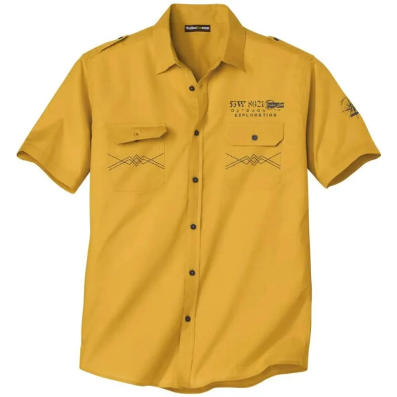 100% Katoen. Stof: Popeline. Ontwerp: Bedrukt, Mouwprint, Tekst. Zakken: 2 borstzakken, knoopsluiting, klepsluiting. Bevestiging: Knop. Halslijn: Collared. Hem: Afgerond. Mouwtype: Korte mouwen. 2 rugplooien, epauletten, gespreide kraag. Lengte: 31.5in. 110gsm.