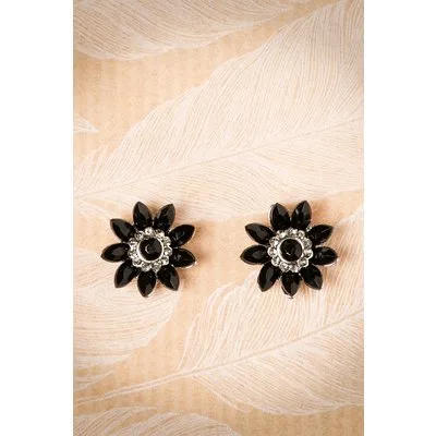 Audrey Jet Flower stud oorbellen in zwart en zilver