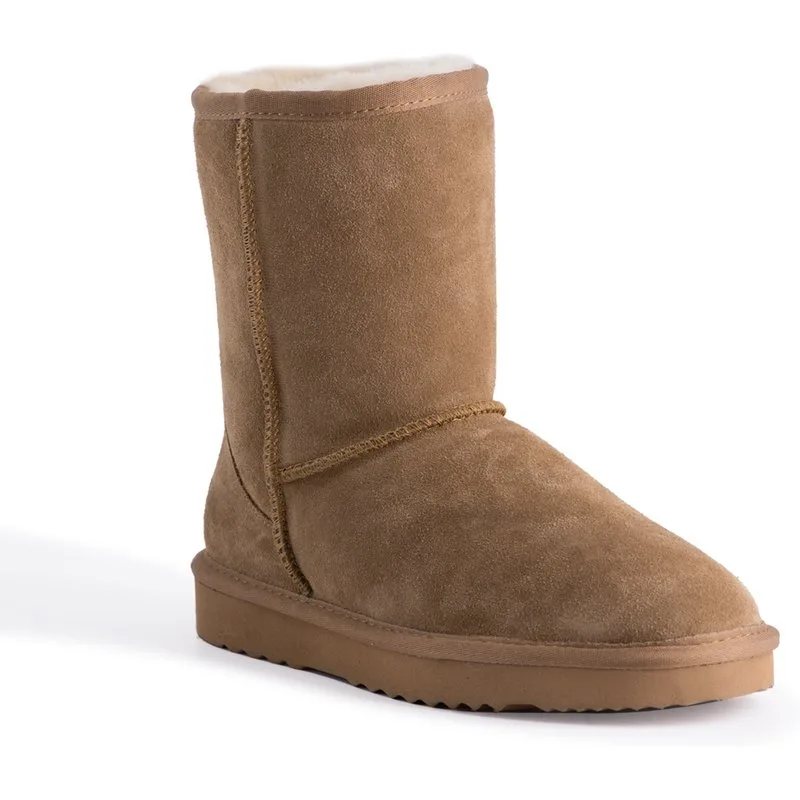 DETAILS Unieke volledig voorgevormde inlegzool met ondersteuning - volledig met schapenvacht gevoerd voetbed - uiterst comfortabel Volledig lederen suède bovenwerk - waterbestendig Zachte, echte Australische schapenvacht voering Duurzaam gewonnen en milieuvriendelijk verwerkt Waardevolle unisex laarzen Rubberen EVA buitenzool met hoge dichtheid - lichter, zachter en duurzamer Lange en stevige wolvacht voor superieure warmte Dubbele stiksels en versterkte hiel Schapenvacht ademt waardoor voeten warm blijven in de winter en koel in de zomer