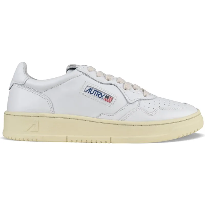 Lage Autry sneakers van wit leer.Logopatch aan de buitenkant. Witte lederen toonbank met logo in reliëf.Tong met logopatch.Rubberen zool met geel effect. Vetersluiting.Geperforeerde ronde neus.100% leer.