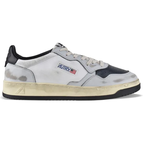 Sneakers Autry Super vintage zwart/wit/grijs.Logopatch aan de buitenkant. Zwarte leren hiel met logo in reliëf.Tong met logopatch.Contrasterende rubberen zool met vintageprint. Vetersluiting. Geperforeerde ronde teen.100% leer.