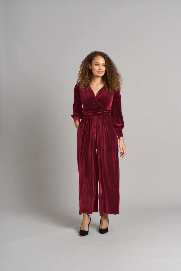 Ava jumpsuit van fluweel – Berry