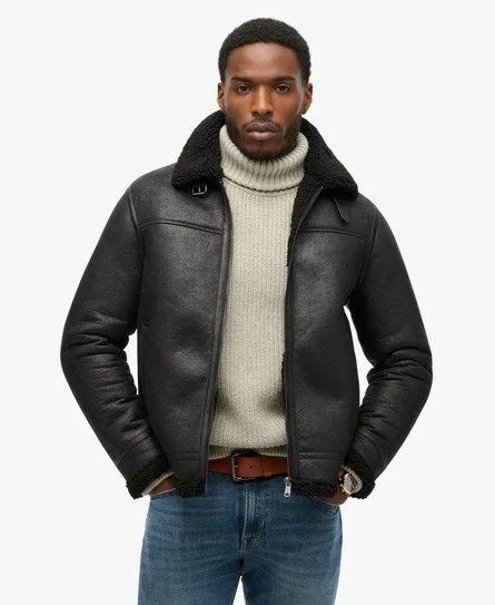 Aviator jas van Imitatiescheerwol Zwart Prijzen