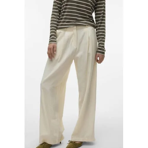 Deze broek van AWARE by VERO MODA heeft een straight fit en een hoge taille. De ecru broek is gemaakt van 100% viscose en heeft zakken aan de voor- en achterkant. De rits- en haaksluiting maakt het helemaal af.