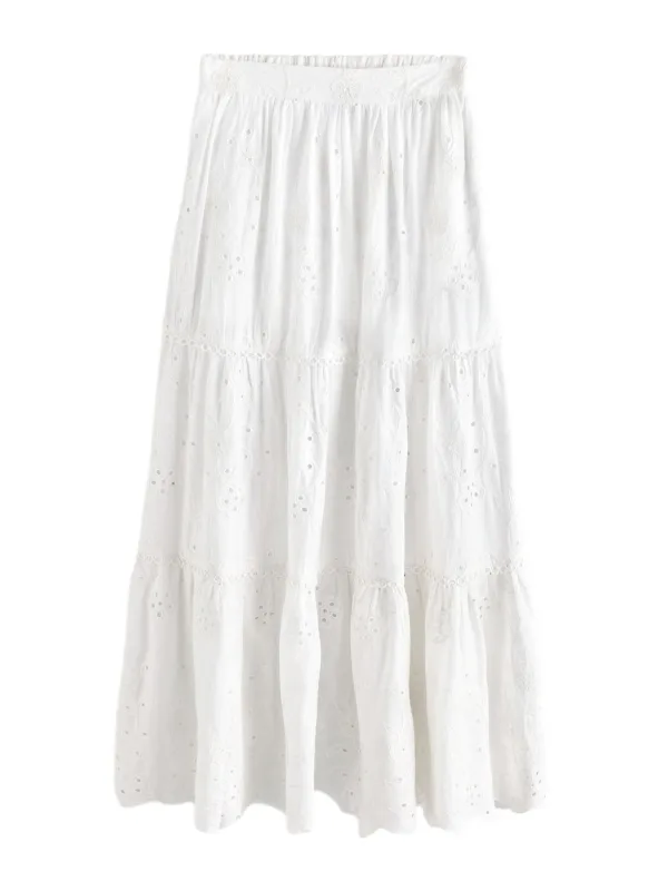 Design: Gevoerde zoom/rand, Elastische taille/zoom, Geschulpte zoom; Materiaal: Katoen; Motief: Effen; Rokvorm: Volantrok; Details: Borduursels, Volant, Gedrapeerd, Mesh; Extra's: Applicaties, Op staal naden, Voelt zacht aan; Lengte: Lang/maxi; Pasvorm: Normale pasvorm