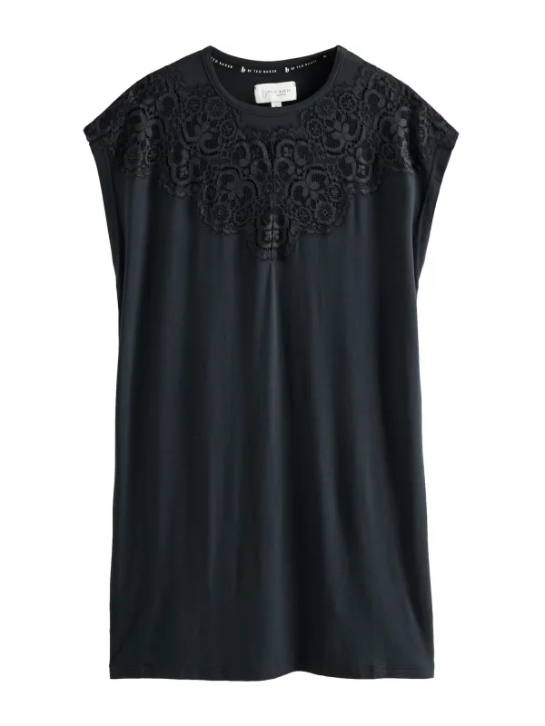 Design: Gevoerde zoom/rand, Vleermuismouwen, Zijdelingse inkepingen; Type sluiting: Slip; Materiaal: Jersey; Halstype: Ronde hals; Motief: Effen; Details: Kant; Extra's: Op staal naden, Lichte stof; Pasvorm: Normale pasvorm; Armlengte: Kwartmouw; Lengte: Lange pasvorm