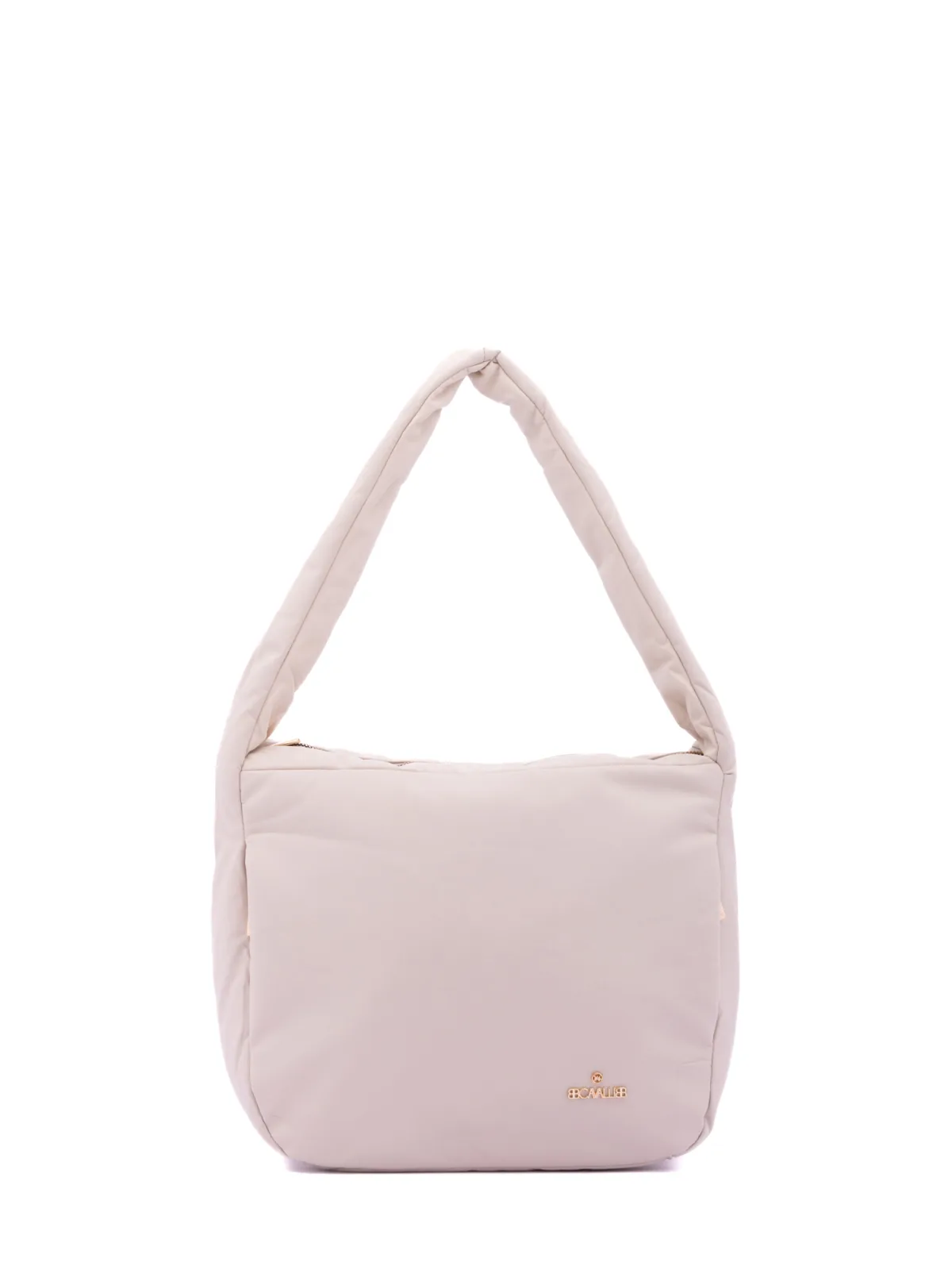 Damesschoudertas met ritssluiting. één met ritssluiting en twee open binnenzakken. twee zijritsen externe zakken. ontbrekende schouderband. in stoffen handvat. een binnencompartiment. extern materiaal. gevoerd met polyester binnenkant. Afmetingen: 33x30x12 cm. Modeproduct