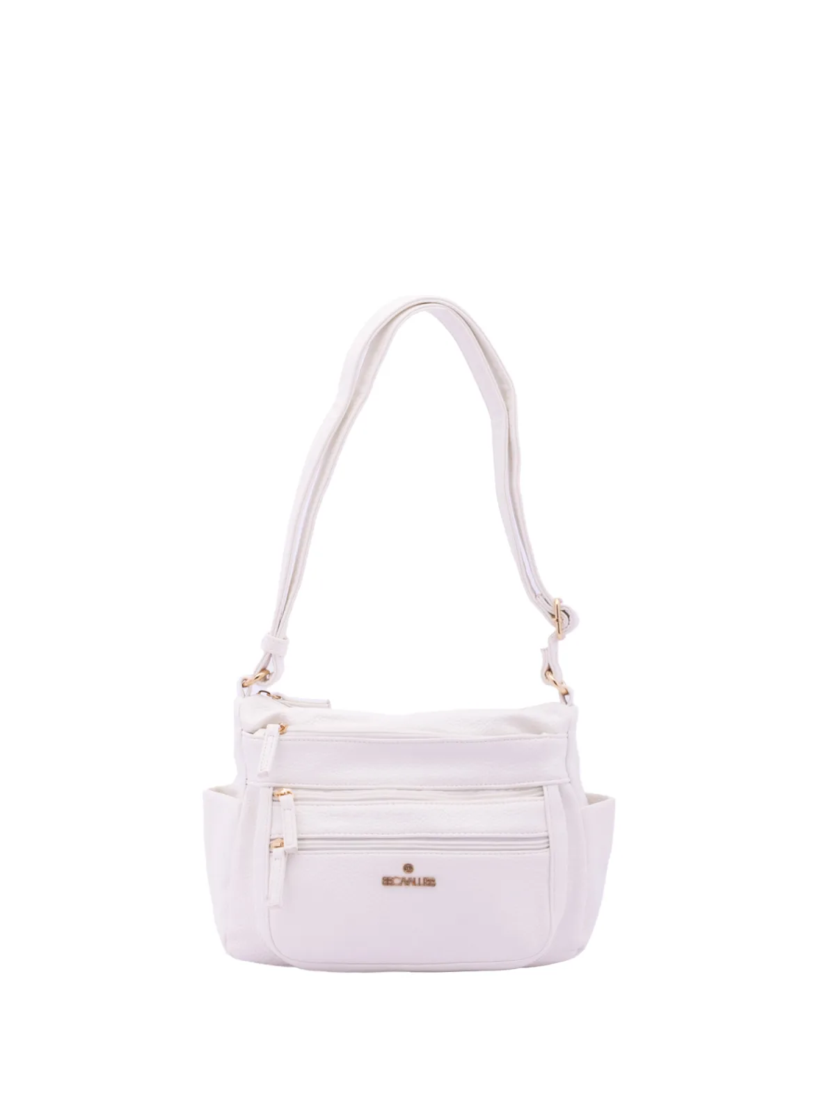 Damesschoudertas met ritssluiting. één met ritssluiting en twee open binnenzakken. drie aan de voorkant met ritssluiting, twee aan de zijkanten open en één aan de achterkant met externe zakken met ritssluiting. ontbrekende schouderband. verstelbaar in eco-lederen handvat. twee binnenvakken. extern materiaal. gevoerd met polyester binnenkant. Afmetingen: 27x20x14 cm. Modeproduct