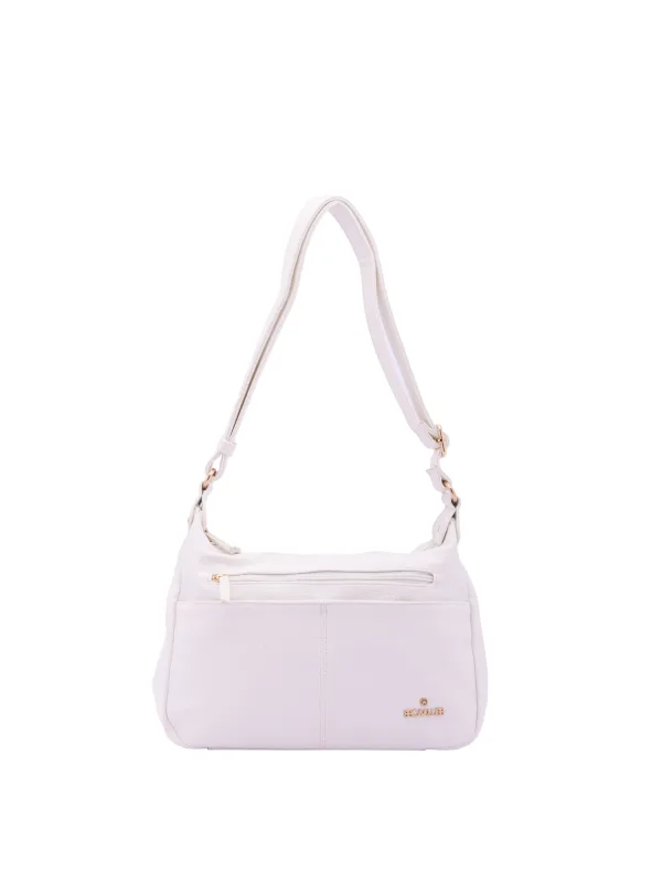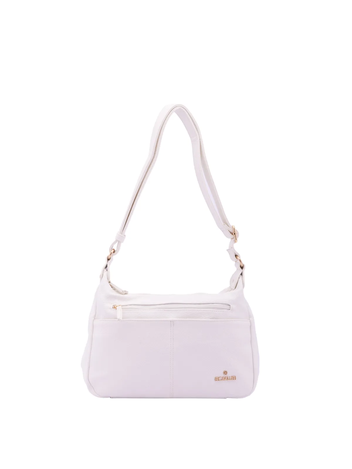 Damesschoudertas met ritssluiting. één met ritssluiting en twee open binnenzakken. één voorkant met ritssluiting, twee fronten met magnetische knoop en één achterkant met externe zakken met rits. ontbrekende schouderband. verstelbaar in eco-lederen handvat. twee binnenvakken. extern materiaal. gevoerd met polyester binnenkant. Afmetingen: 30x20x10 cm. Modeproduct